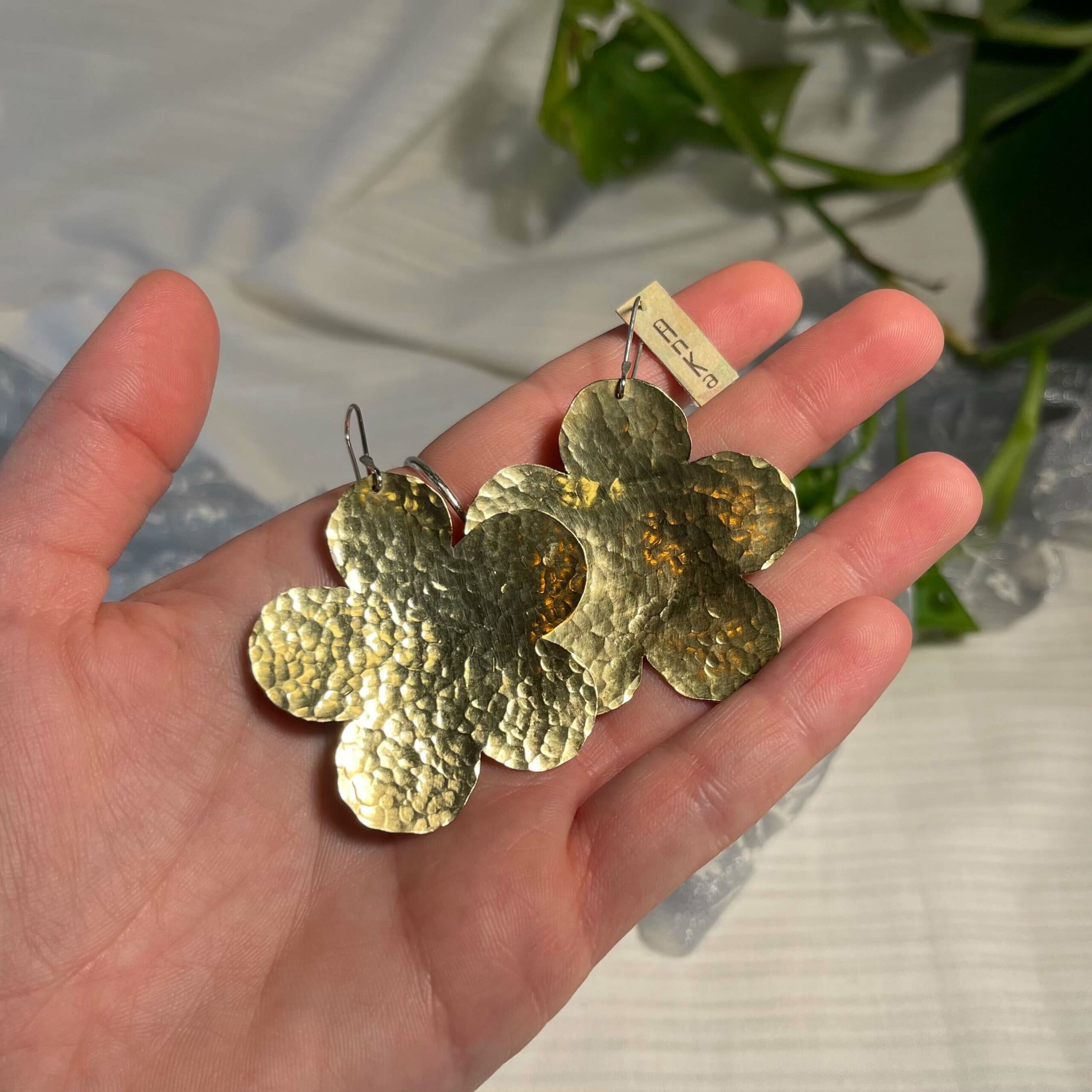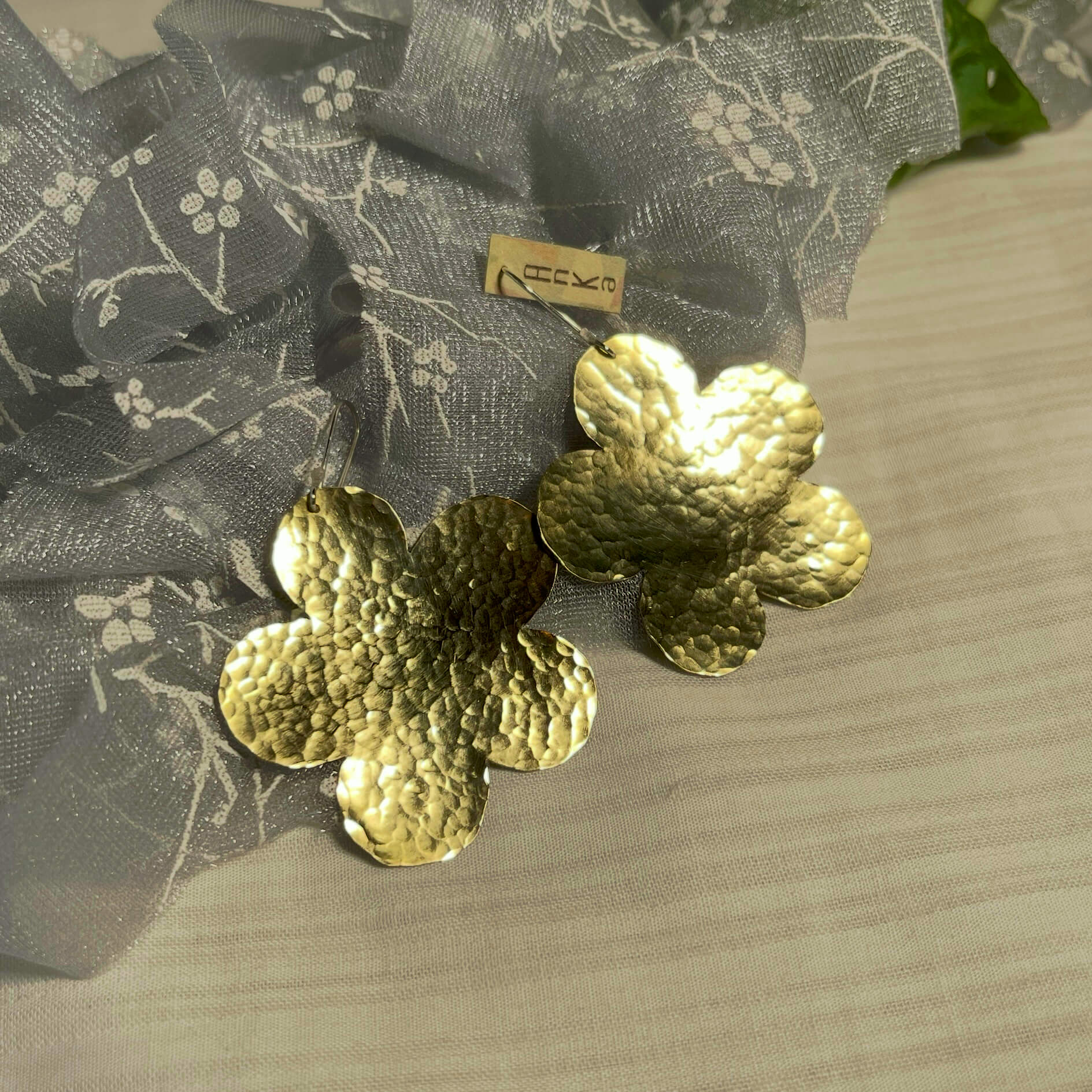 Χειροποίητα σκουλαρίκια σε σχήμα λουλουδιών, σφυρηλατημένα στο χέρι, σε ορείχαλκο ή ασήμι 925.