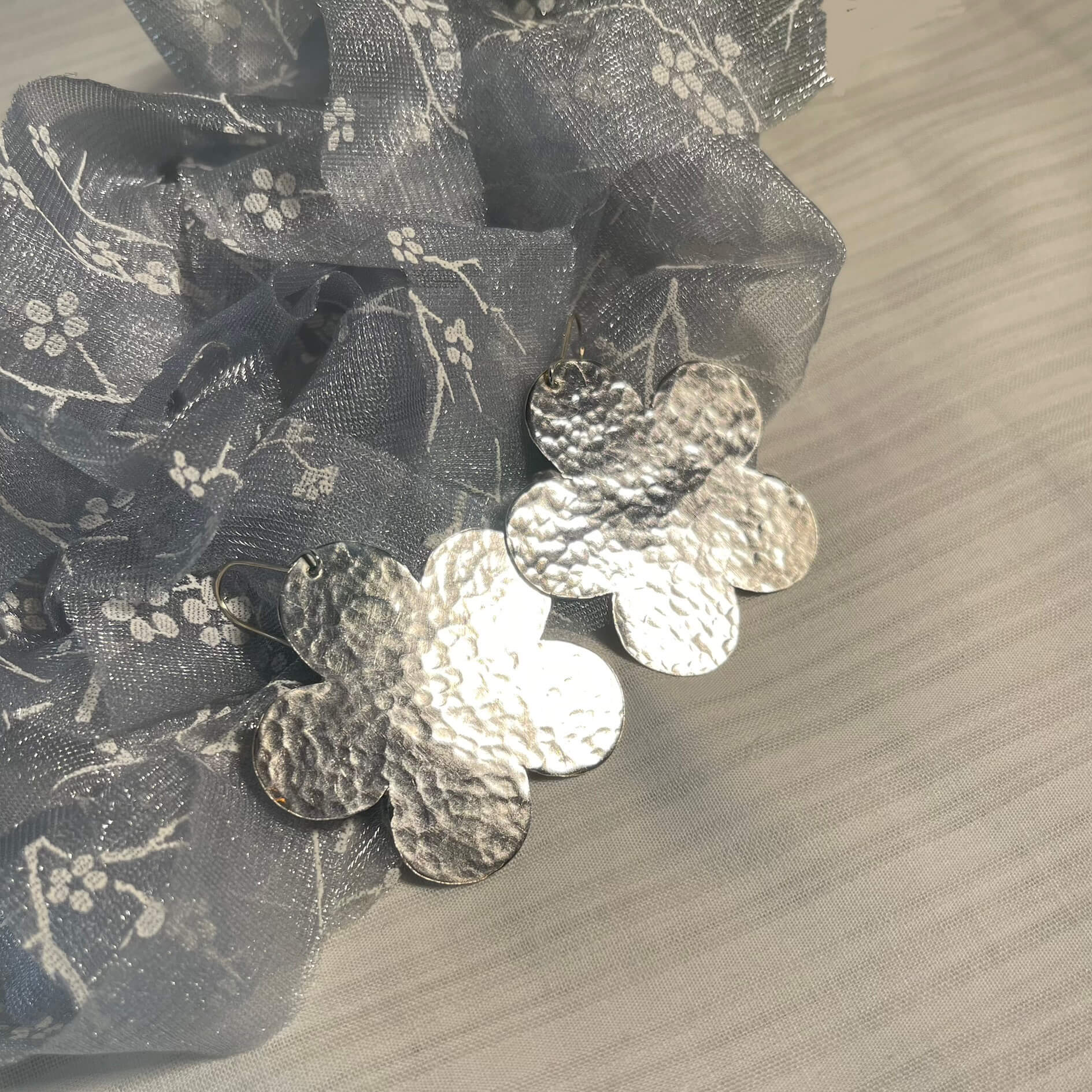Τα χειροποίητα σκουλαρίκια Anneli L. είναι κρεμαστά σκουλαρίκια, σφυρηλατημένα στο χέρι, σε σχήμα λουλουδιών.